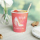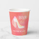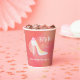 Características de la taza de papel de despedida de soltera elegante tacón alto blanco novia para ser boda con fondo de melocotón rosa.