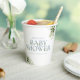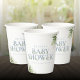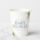 Una elegante taza de papel para la ducha de bebé con una tipografía azul polvorienta de moda y vegetación botánica de bonito. Diseñado por Thisisnotme©