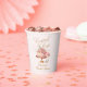 Celebre con estos elegantes vasos de papel para despedida de soltera con cócteles y pastel de color rosa. Este diseño presenta arte de pastel y cóctel floral de acuarela con acentos dorados falsos. Personalice con sus propios detalles.