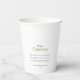 Añada un toque de elegancia rústica a sus reuniones de vacaciones con esta taza de papel para Navidades de diseño. Con un encantador ilustracion acuático de flores de algodón, pinecones y follaje de invierno sobre un fondo blanco limpio, es perfecto para fiestas de vacaciones acogedoras, cenas de Navidades y eventos de temporada. Personalice su nombre y año familiar con un toque festivo y personalizado que gustará a los huéspedes.