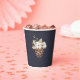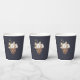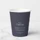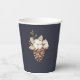Añada un toque de elegancia rústica a sus reuniones de vacaciones con esta taza de papel para Navidades de diseño. Con un encantador ilustracion acuático de flores de algodón, pinecona y follaje de invierno sobre un fondo azul marino, es perfecto para celebrar fiestas de vacaciones, cenas de Navidades y eventos de temporada. Personalice su nombre y año familiar con un toque festivo y personalizado que gustará a los huéspedes.