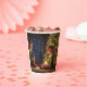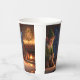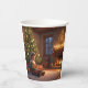 Estas tazas de papel presentan elfos debajo del árbol de Navidad.