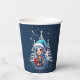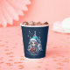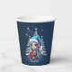 Un elfo alegre que brilla con su largo y florido cabello azul. Su cabello parece brillar en la luz suave, dándole un brillo mágico. En su cabeza usa un lindo gorra de Navidades azules adornado con una pompa blanca que concuerda perfectamente con su atuendo. Su cálida sonrisa irradia alegría y calidez, dando a los espectadores un sentido de anticipación festiva. El fondo del diseño está formado por elegantes árboles blancos de Navidad y el cielo está salpicado de brillantes estrellas blancas que brillan como pequeños diamantes, creando una atmósfera mágica.