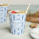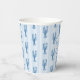 Nuestras tazas de papel para despedida de soltera de langosta de verano son perfectas para tu celebración junto al mar! El diseño caprichoso de la costa cuenta con letras azules mediterráneas veraniegas y ilustraciones de langostas en un fondo de rayas de cabana de color melocotón pálido. Dos líneas de texto personalizado están enmarcadas por un borde de garabatos de concha ondulada. Se muestra con "ella es un tesoro" y el nombre de la futura novia.