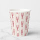 Nuestras tazas de papel para fiesta de despedida de soltera de langosta de verano son perfectas para tu celebración junto al mar. El diseño caprichoso de la costa presenta letras rojas veraniegas e ilustraciones de langosta en un fondo de rayas de cabaña de color melocotón pálido. Dos líneas de texto personalizado están enmarcadas por un borde de garabato de concha ondulada. Se muestra con "ella es un tesoro" y el nombre de la futura novia.