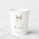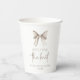 ¡Esto es un vaso de papel para la fiesta de despedida de soltera con lazo blanco Ella está atando el lazo!