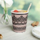 Vasos De Papel encaje negro, calado, fondo marrón, beige, bla