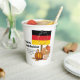 Estiloso y patriótico ALEMÁN THANKSGIVING - ERNTEDANKFEST - tazas de papel con TEXTO de PERSONALIZABLE, mostrando el esquema del mapa y la bandera de ALEMANIA en un poste de pancartas con una calabaza y hojas otoño. El texto dice FROHES ERNTEDANKFEST - GRACIAS SEÑOR POR TU FE Y POR TODO LO QUE HAS HECHO. Este texto es PERSONALIZABLE, así que puedes cambiar a todo alemán, todo inglés o una mezcla de ambos! Disponibles suministros fiestas y tarjetas de felicitación.