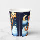 Adorable diseño de un gatito de ojos grandes trepando una escalera que se extiende a través de las nubes hasta los cielos oscuros y estrellados hasta una bonita estrella sonriente. Una luna de barrio amarillo brillante y estrellas brillantes iluminan el camino por encima de las nubes blancas onduladas. Un diseño divertido para niños pequeños y salas de bebés decorando y otros productos de calidad disponibles para los más pequeños. Un gato feliz con rayas marrones y blancas y enormes ojos verdes brillantes te mira. Feliz y tranquilo, el gato maricón está buscando el lugar perfecto para echarse una siesta a su gato.