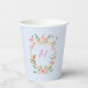 Vasos De Papel Escudo floral Monograma Azul Baby Shower