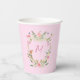 Vasos De Papel Escudo floral Monograma Baby Shower rosa