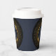 Elegante y lujosa copa de papel de aniversario con un brillante anillo dorado y purpurina. 50.º aniversario del boda
