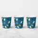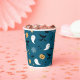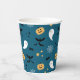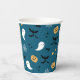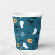 Cuadros de papel con fantasmas de Halloween, calabazas, telarañas y murciélagos sobre un fondo azul oscuro.