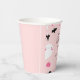 Esta linda taza de papel de la fiesta de cumpleaños de chica con temática de Halloween presenta ilustraciones de un fantasma, gato negro, araña, murciélago y calabazas. El texto dice, "Spooky One".