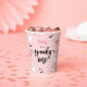 Tocante una taza de papel de Halloween lindo fantasma de primer cumpleaños. Diseño moderno con temática de Halloween para un fiesta espeluznante! Esta copa de papel de cumpleaños incluye telaraña, fantasmas, calabazas, murciélagos, arañas, hojas, maíz, estrellas y margaritas. ¡Esta taza de papel es genial para las fiestas de cumpleaños de las niñas!