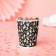Unos fantasmas adorables flotan entre unas mullidas gafas sobre un fondo negro en esta divertida taza de papel de Halloween.