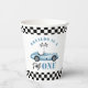 Fast One Blue Race car Boy 1er cumpleaños Papel Cups de coincidencias disponibles.