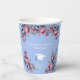 Bonito Blue graduation party en tazas de papel con hermosas rosas y flores de anémona azules y blancas. Personaliza con cualquier texto que quieras, cambia el color de fondo a tu favorito. También hay disponibles placas de papel, servilletas y globos.