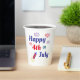 Elegante diseño patriótico del personalizado de vacaciones del 4 de julio, mason jar, presenta un diseño de texto con tipografía de guión "Happy 4 of July" con colores rojo, azul y azul marino con fuegos artificiales de celebración