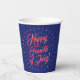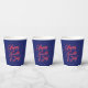 Feliz 4 de julio, estrellas rojas y azules de la marina incendian patrióticos vasos de papel festivo festivo del Partido. Texto de guión elegante. Ideal para celebrar el 4 de julio, Día de la Independencia, fiestas navideñas. Compruebe el resto de la colección para buscar elementos de coordinación coincidentes.
