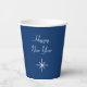 Feliz Año Nuevo con copa de papel azul y blanco, con diseño de copos de nieve y tipografía de personalizable. Una simple pero festiva adición a su fiesta de Año Nuevo o celebración de invierno.