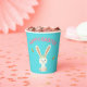 Vasos De Papel Feliz conejito blanco de Pascua en azul