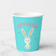 Vasos De Papel Feliz conejito blanco de Pascua en azul