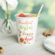 Doble cara Gracias Joyful Happy Blessed Holiday Paper Cups Celebra tus temporadas navideñas con este colorido diseño de copa de papel que tiene la frase de celebración "Gracias feliz bienaventurado" en dos lados de la taza. Funciona bien para reuniones de vacaciones o incluso como diseño de negocios. La plantilla le permite eliminar nuestras imágenes y añadir las suyas si lo prefiere, simplemente seleccione el botón de personalización del producto.