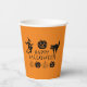 Feliz truco espeluznante de Halloween o trata a los fiestas Cups de papel negro y naranja, jack o linterna, calabaza, bruja, fantasma, cráneo, luna, gato negro