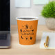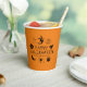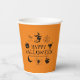 Feliz Halloween nombre personalizado espeluznante fiesta Cups de papel. negro y naranja con personalizable de texto jack o linterna, calabaza, bruja, fantasma, cráneo, luna, gato negro