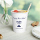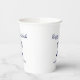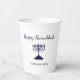 Happy Hanukkah Blue Holiday paper cup, con un sencillo diseño de menorah azul y tipografía de escritura. Con texto en personalizable azul, puede agregar su propia información. Una manera festiva de celebrar con amigos y seres queridos.