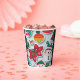 Colección colorida y festiva de decoraciones navideñas, como árboles navideños, adornos, dulces y un muñeco de nieve, todo cortado de papel y arreglado sobre un fondo blanco.