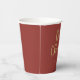 Estas tazas de papel vacacional simples y elegantes dicen "Feliz Navidad" en la moderna e informal tipografía de escritura de oro en un ambiente rojo festivo.
