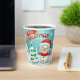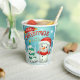 Feliz Navidad Feliz Año Nuevo Snowman Cute Coffee Paper Cups presenta un caprichoso hombre de nieve y árbol de Navidad con el texto "Feliz Navidad y Feliz Año Nuevo". Perfecto para las celebraciones de fiestas de Navidades. Diseñado por Evco Holidays www.zazzle.com/store/evcoholidays