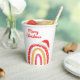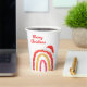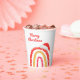 Merry Christmas Santa Hat Rainbow Modern Holiday Party Paper Cups presenta un divertido y colorido arco iris con un Sombrero de Santa encima es el texto "Feliz Navidad" en el moderno guión escrito a mano roja. Ver otros elementos de esta colección diseñada por Evco Holidays https://www.zazzle.com/store/evcoholidays