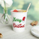 Copa con Feliz Navidad en texto 3D y un sombrero Santa.