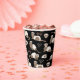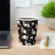 Ferretes dibujados a mano, xoxo y corazones patrón tazas de papel, fondo negro.
