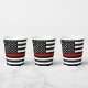 Fiesta de bomberos delgado de la línea roja Cups de papel - diseño de la bandera estadounidense en colores de la bandera del bombero. Estas tazas de papel para bomberos son perfectas para tu fiesta del departamento de bomberos, fiesta de retiro para bomberos o graduación de la academia de bomberos. DERECHOS RESERVADOS © 2020 Judy Burrows, Black Dog Art - Todos los derechos reservados. Fiesta de bomberos bomberos delgadas tazas de papel de la línea roja