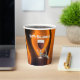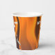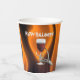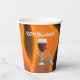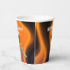 Tazas de papel divertidas con tema de Halloween hechas con un fondo espeluznante como llamas. Gráficos de una mano de esqueleto sosteniendo un vaso de vino decoran la parte media de la taza con texto gris personalizado, en la parte superior, listo para personalizar y leer lo que quieras. Productos para fiestas de cóctel de Halloween a juego están disponibles.