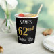 Este elegante y lujoso diseño de tazas de papel con temática de cumpleaños incluye un nombre personalizado y el mensaje "Fiesta de cumpleaños número 62". El gran número "62nd" tiene un patrón de color inspirado en el oro de imitación/imitación, las palabras "Birthday Party" están en un texto ornamentado de escritura, y el fondo es negro de color por defecto (aunque se puede personalizar). Las elegantes tazas de papel organizadas como esta podrían ser usadas en una celebración de cumpleaños/fiesta que se celebra para honrar el 62 cumpleaños de alguien. [~Z0000567]