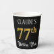 Este lujoso y opulento diseño de taza de papel temático para cumpleaños incluye un nombre personalizado y el mensaje "Fiesta de cumpleaños número 77". El gran número "77th" tiene un patrón de color falso/imitación inspirado en el oro, las palabras "Birthday Party" están en un texto elegante estilo guión, y el fondo es negro de color por defecto (aunque se puede personalizar). Unas tazas de papel ornamentadas como esta pueden ser útiles en una fiesta de cumpleaños/celebración que se lleva a cabo para honrar el cumpleaños 77 de alguien. [~Z0000567]
