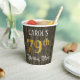 Este elegante y opulento diseño de taza de papel de cumpleaños incluye un nombre personalizado y el mensaje "Fiesta de cumpleaños 79". El gran número "79th" tiene un patrón de color falso/imitación de inspiración dorada, las palabras "Birthday Party" están en un elegante texto estilo guion, y el fondo tiene un patrón inspirado en la imitación/imitación de grano de madera. Las lujosas tazas de papel organizadas como esta pueden ser usadas en una fiesta de cumpleaños/celebración que se lleva a cabo para honrar el cumpleaños setenta y nueve de alguien. [~Z0000568]
