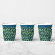 El diseño de la fiesta de cumpleaños de Cowboy gorra en verde azulado y dorado presenta el dibujo a mano de WindyDesign en tazas de papel para una fiesta de cumpleaños de vaquero.