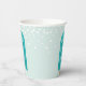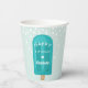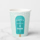 Diseñados para coincidir con las invitaciones a fiestas de cumpleaños de nuestros niños, estos bonitos vasos de papel personalizados presentan una brillante paleta verde azulada con las palabras "Feliz cumpleaños [nombre]" en letras retro blancas adornadas con un corazón.