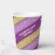 Añada el nombre y edad del niño de cumpleaños o del chica a estas coloridas tazas de papel fiesta que le dan un toque moderno a una franja celta. Utilice "Personalice esta plantilla" para ajustar el texto de "Elizabeth's 28th Birthday!" a su nombre, edad y evento preferidos. El texto blanco se sienta sobre rayas amarillas, lilas y moradas sobre una morada oscura.