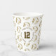 Estas tazas de papel de la fiesta de cumpleaños con temática de voleibol presentan varias bolitas de voleibol estilizadas de oro y blanco organizadas en un sencillo patrón de caída - el texto en un círculo blanco se puede personalizar, actualmente el número 12 para representar la edad de un niño rodeado por las palabras "Feliz cumpleaños" - de katz_d_zynes