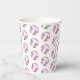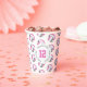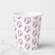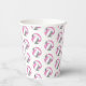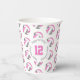 Estas tazas de papel de fiesta de cumpleaños con tema de voleibol presentan varias bolitas de voleibol estilizadas rosa, gris y blanco dispuestas en un sencillo patrón de caída - el texto en un círculo blanco se puede personalizar, actualmente el número 12 para representar la edad de un niño rodeado por las palabras "Feliz cumpleaños" - de katz_d_zynes