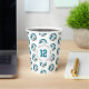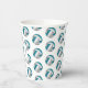 Estas tazas de papel de fiesta de cumpleaños con tema de voleibol presentan varias bolitas de voleibol verde azuladas, grises y blancas estilizadas dispuestas en un patrón simple de caída - el texto en un círculo blanco se puede personalizar, actualmente el número 12 para representar la edad de un niño rodeado por las palabras "Feliz cumpleaños" - de katz_d_zynes