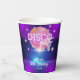 Una bola de disco brillante rosa y luces en crecimiento disco fiesta de cumpleaños copa de papel. Un fiesta perfecto para un cumpleaños retro.
