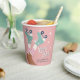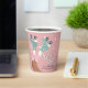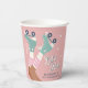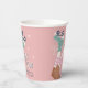Cuidados tazas de papel de cumpleaños con patinaje sobre patines rosa pastel con un ilustracion de inspiración retro de patines verde azulados sobre un chica de piel oscura usando medias de tubo de rayas rosas y "Let's Roll" en un guión de estilo de los años 70. Añada su nombre tipografía azul verde azulado oscuro.